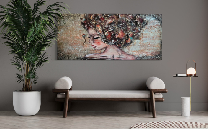 Kenmerkend voor haar stijl is de relief in de werken, aangevuld door prachtige en rijke kleurcombinaties. Haar werken blinken uit in kwaliteit en dat begint bij het materiaal.