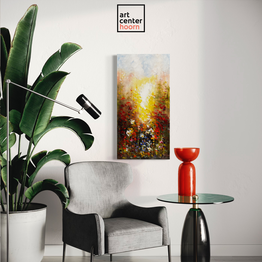 Prachtig nieuw werk, door het hoge smalle formaat een doek wat overal wel een plekje kan vinden.